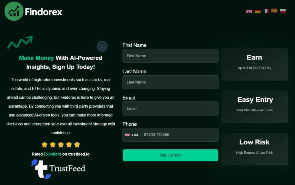 Let’s face it: no one wants to waste hours on a tedious signup process. Findorex recognizes this pain point and delivers a refreshingly straightforward onboarding experience. The platform keeps registration light, just the essentials, and avoids redundant document requests.